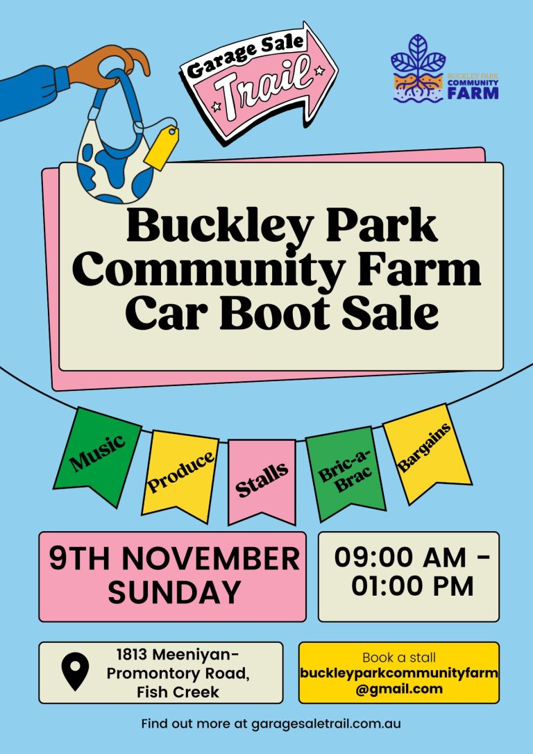 Buckley Park Community Farm is hosting a car boot sale as part of the Garage Sale Trail. Live music, farm produce, secondhand good stalls, cuppa and snacks. Free Entry!