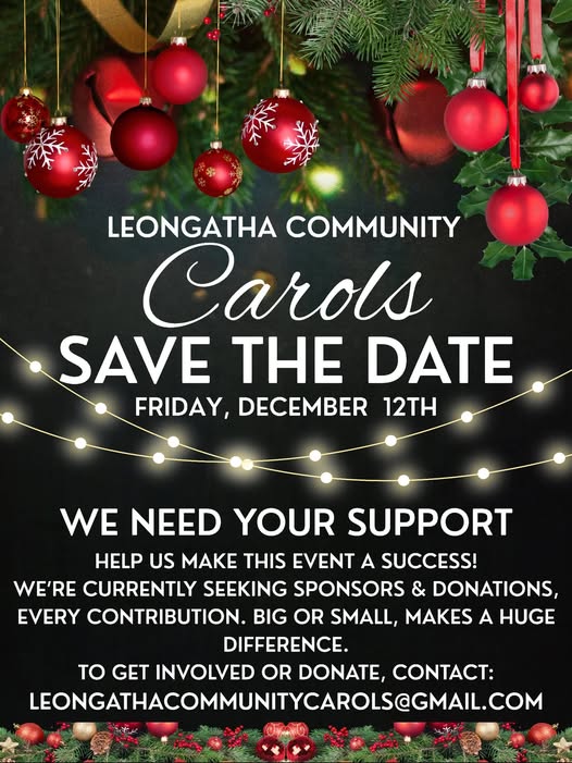 Friday, December 12, at the Leongatha Recreational Reserve. This event is organized by the Leongatha Community Carols group and will feature live music, a fireworks display, and activities for the community, one and all. Bring picnic rugs and chairs