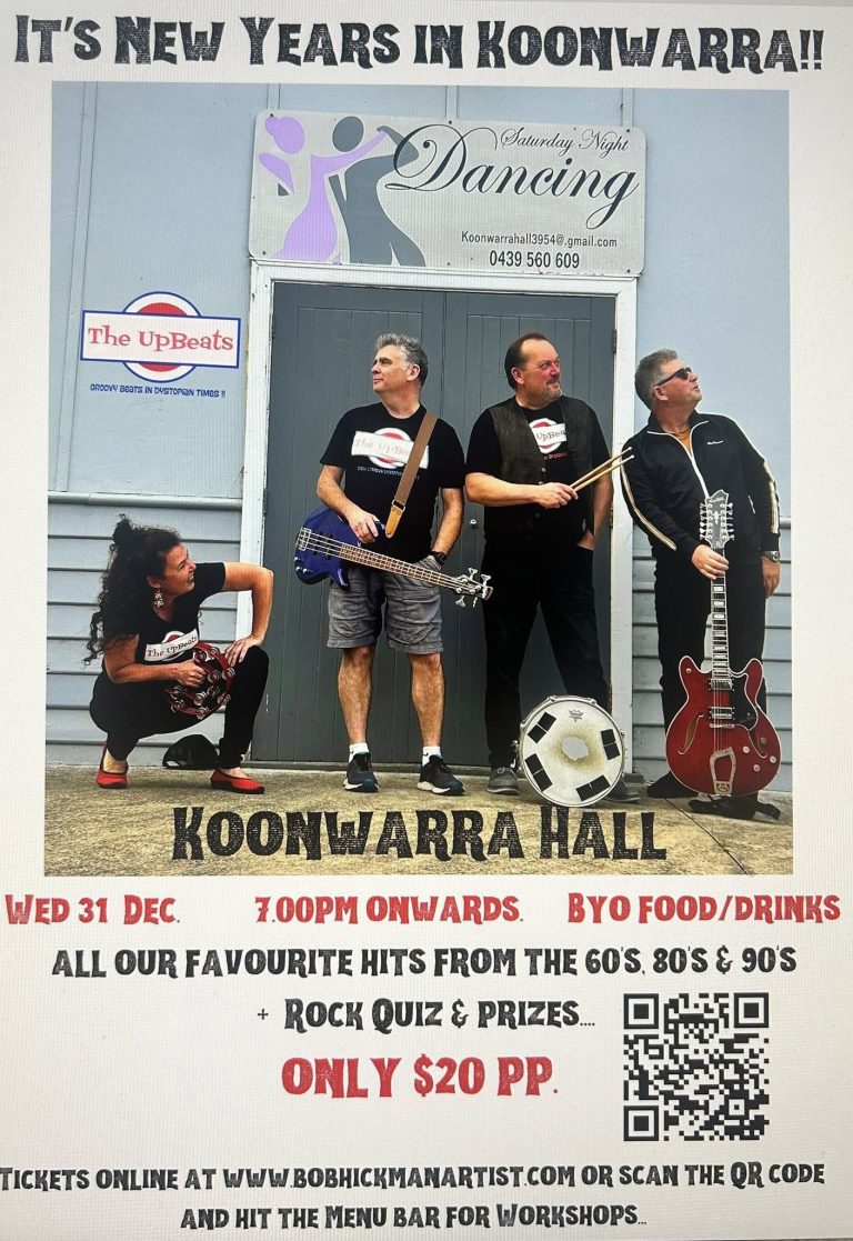 Tickets $20 pp book via website: New Years party at Koonwarra Hall | Bob Hickman