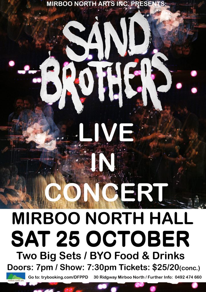 “Sand Brothers Live In concert at Mirboo North Hall”, hosted by Mirboo North arts Inc, will be showcasing songs from across their catalogue, including some new unreleased songs from the forthcoming album.