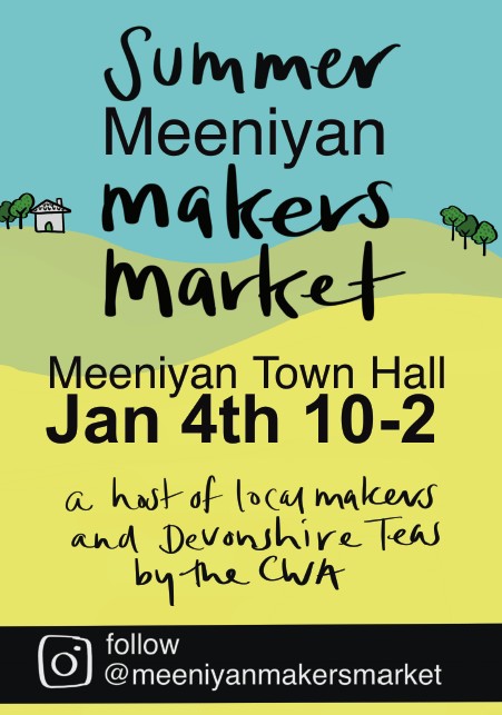 The Summer Meeniyan Makers Market is on Sunday, January 4, 2026, from 10am to 2pm at the Meeniyan Town Hall. The market is a showcase of handcrafted ceramics, original prints, textiles, jewellery, woodwork, and paintings from talented local artists.