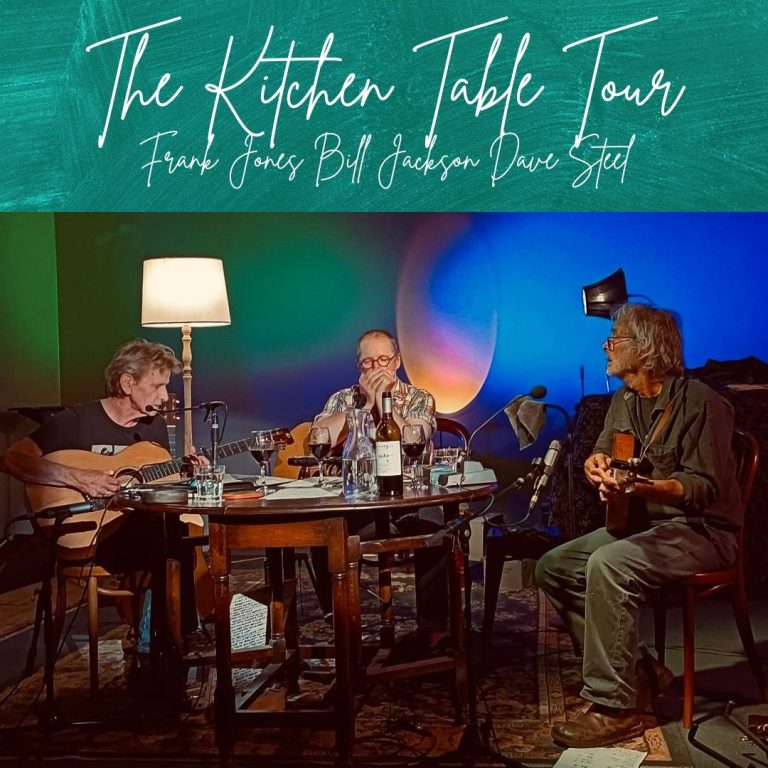 Award Winning Songwriters sitting around a kitchen table doing what they do at home. Bill Jackson, Frank Jones and Dave Steel.