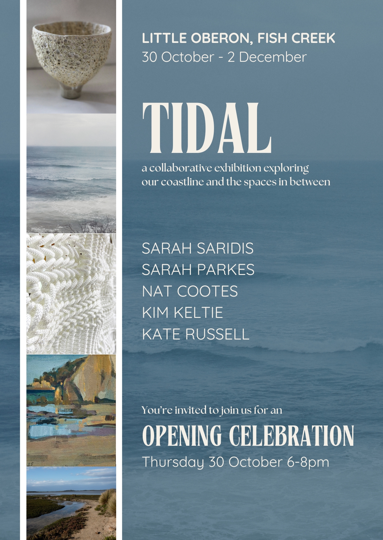 Participating artists are Sarah Saridis, Sarah Parkes, Nat Cootes, Kim Keltie & Kate Russel.