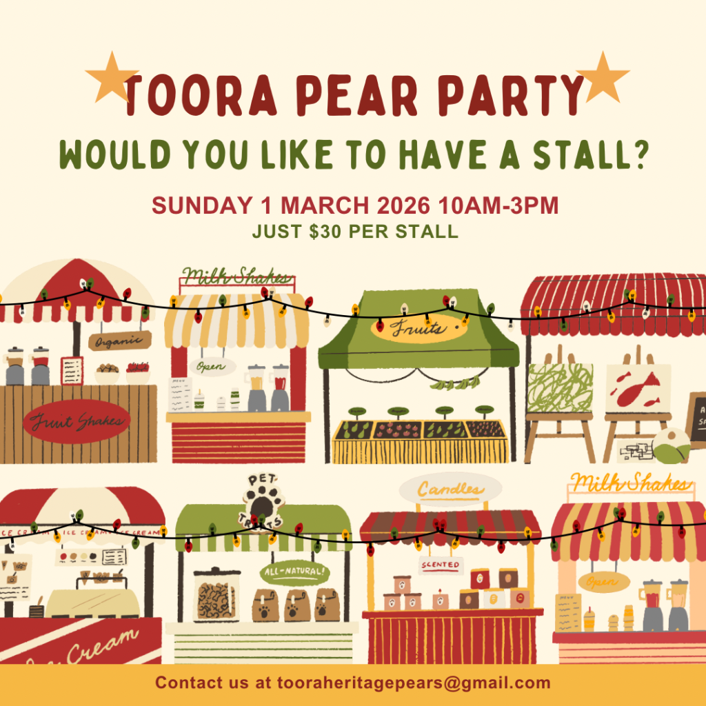 ** Stall Holder enquiries via Email: tooraheritagepears@gmail.com