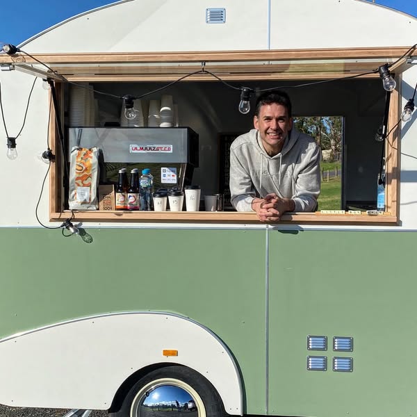Greg’s little Vintage Coffee Van with very early morning coffee, and a few sweet essentials.