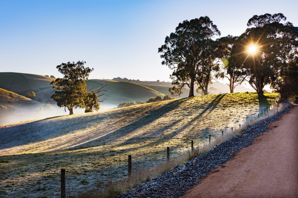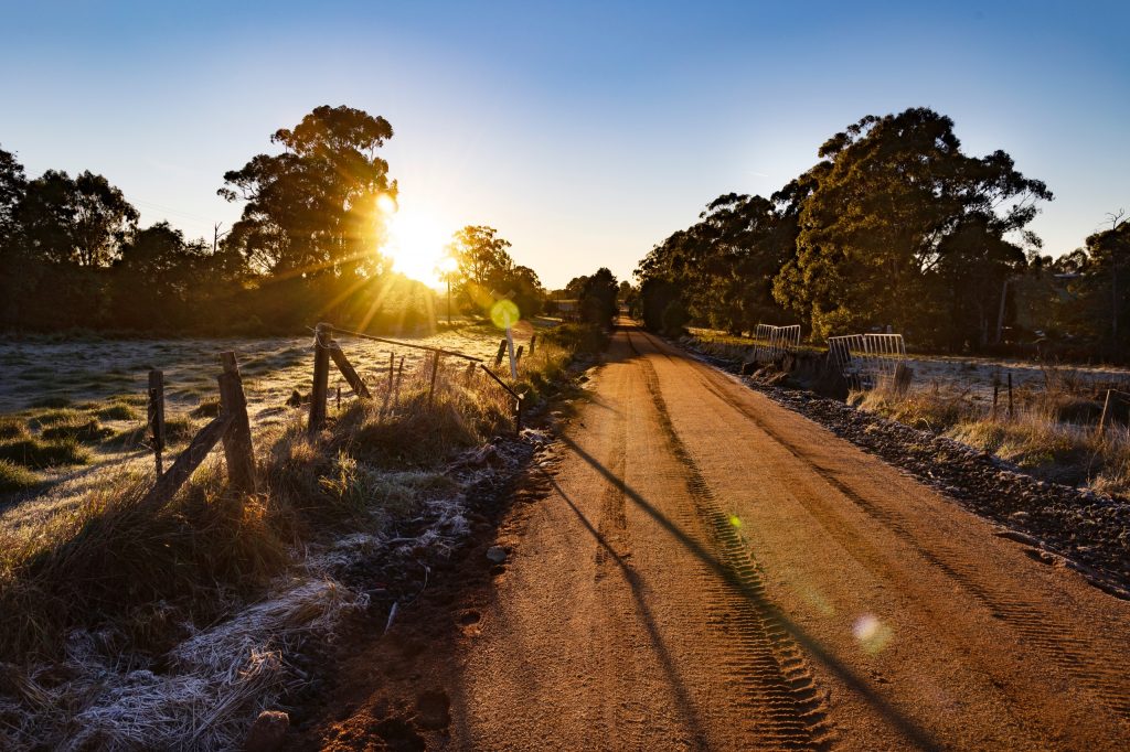 This is a short and very flat section. From the northern edge of town, cross the highway and head east onto the gravel path. The trail is bound by a thin stretch of bushland, affording glimpses of paddocks through young gums.