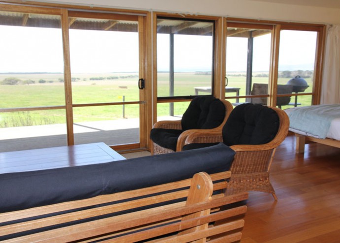 The cottages provide stylish, warm and comfortable self-contained accommodation with breathtaking views and spectacular sunrises and sunsets. The three bedroom house is the home of the original owners of the property. It has undergone a complete renewal but retained some of the 70’s charm. There is a lovely lawn area for outdoor play and a private patio with gas BBQ where you can watch busy blue wrens, cows grazing or just take in the view and breathe the fresh country air.